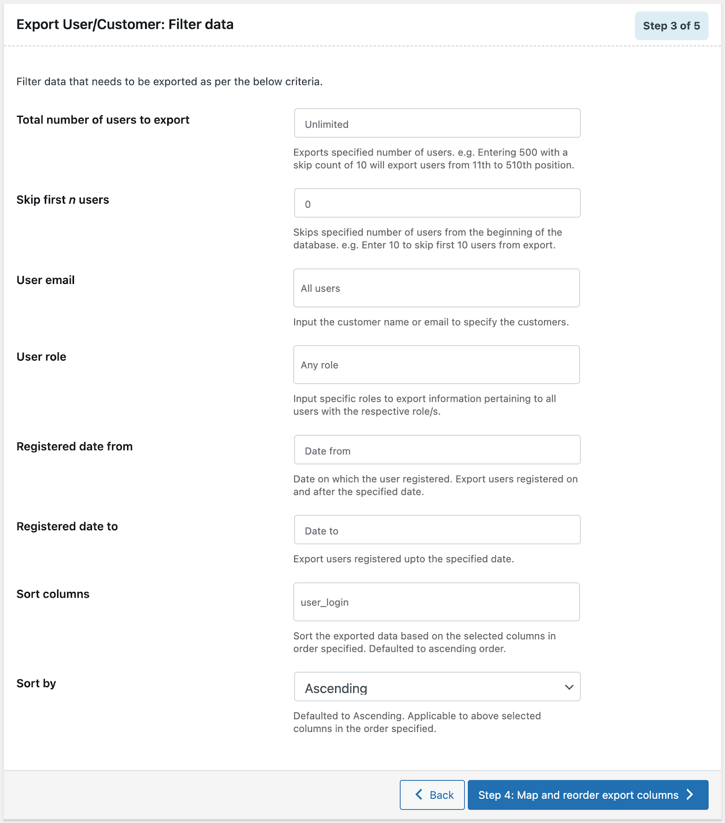 This step allows you to customize the export by applying filters. You can limit the user count, exclude specific users, or set conditions to export only relevant data.