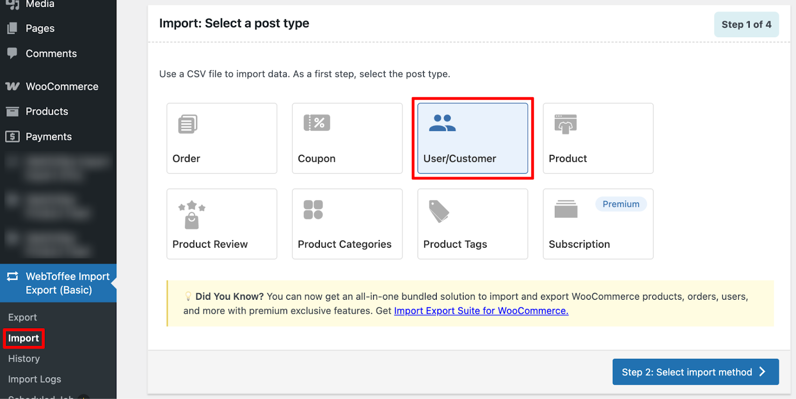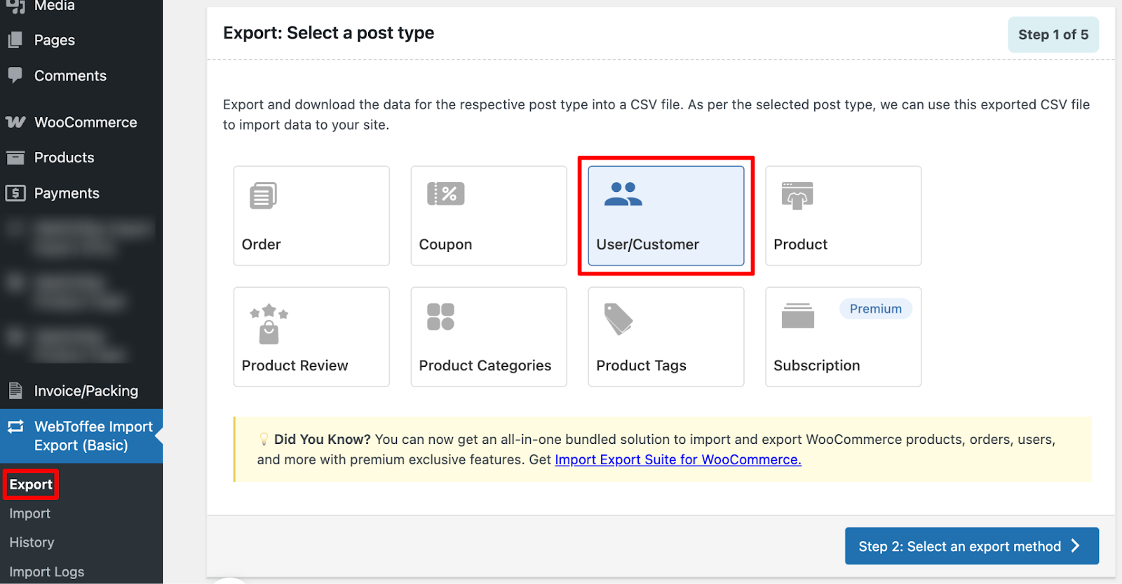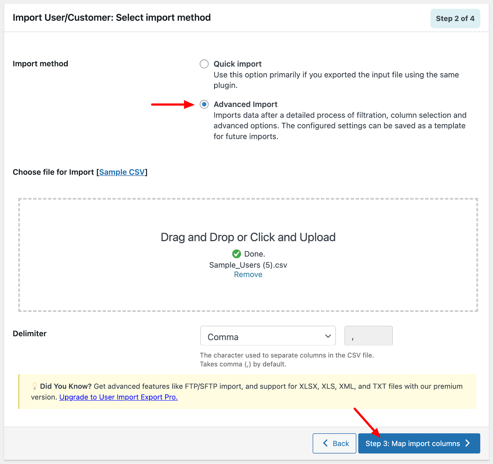 Once done, proceed to the next step of Import Export WooCommerce Users