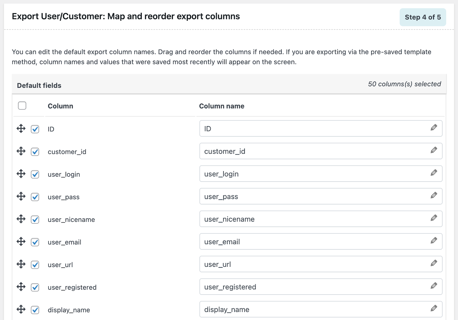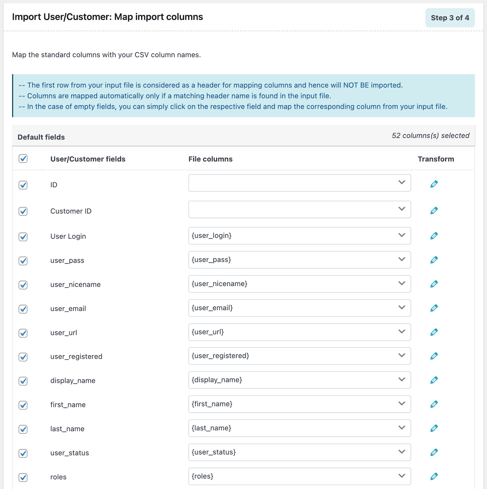 Take a moment to review the column mappings shown by the plugin. When your CSV uses default column names, these fields are usually matched automatically.