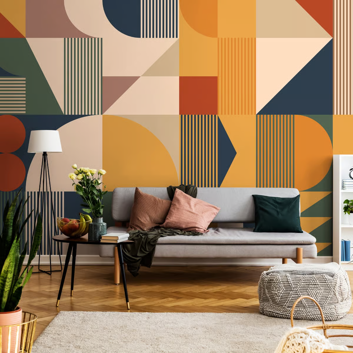 Use large-scale geometry for bold impact. Use smaller repeats for subtle texture. Tie accents back to your brand palette.