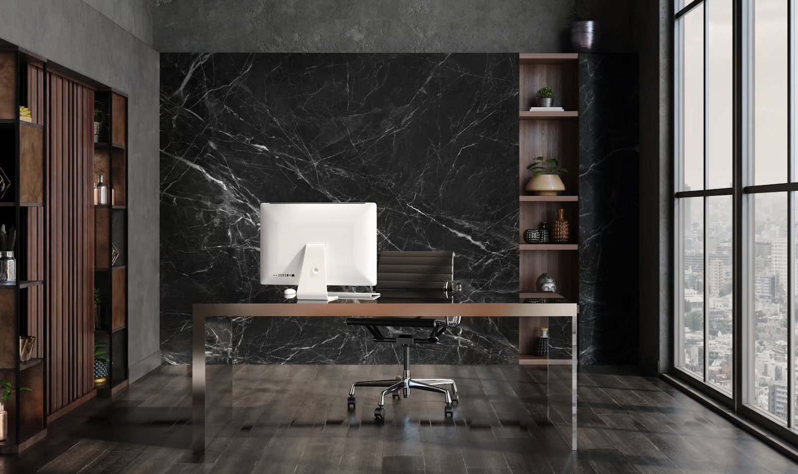 Executive offices often need calm authority. Texture adds depth without distraction. It also reads well on video calls.